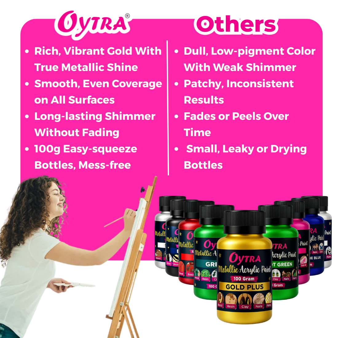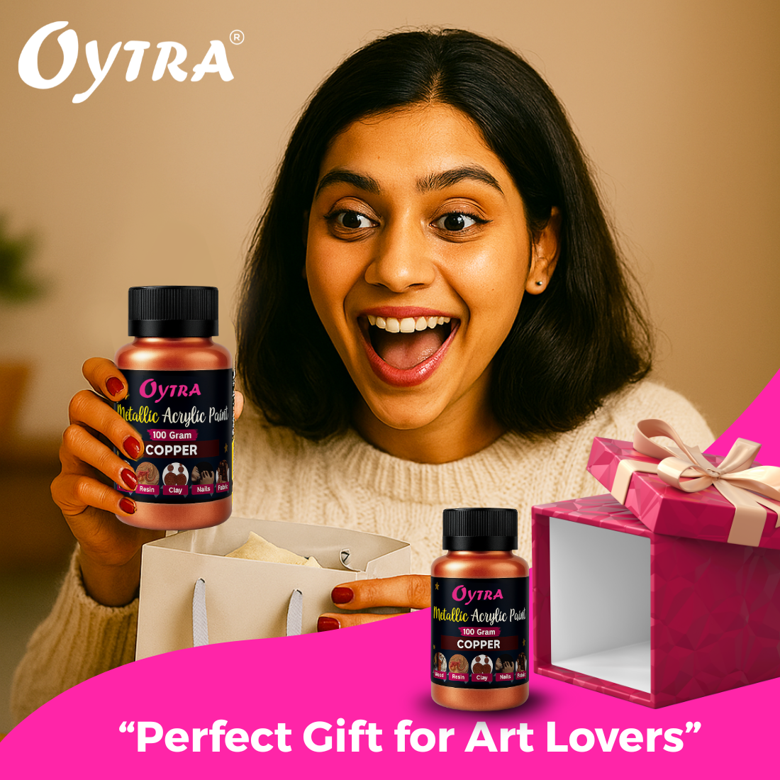 - Convenient 100grams Bottles - Each Acrylic Metallic Paints Set Contains Generous 100 Grams Bottles of Copper Colour Metallic Acrylic Paint, Providing Ample Supply for Your Artistic Endeavors. The Easy-to-squeeze Bottles Ensure Mess-free Dispensing, While the Secure Caps Prevent Drying Out Between Uses.