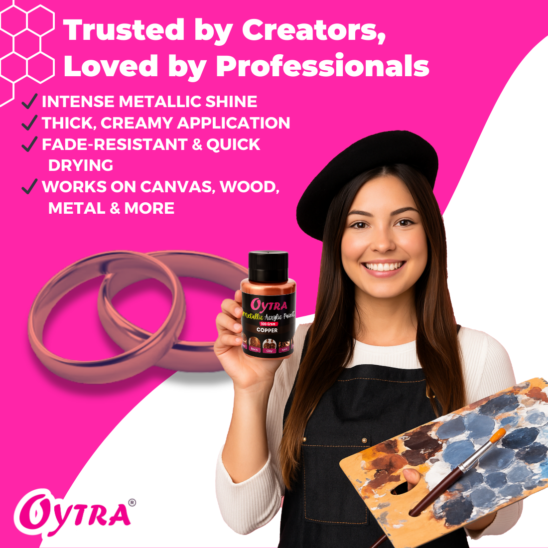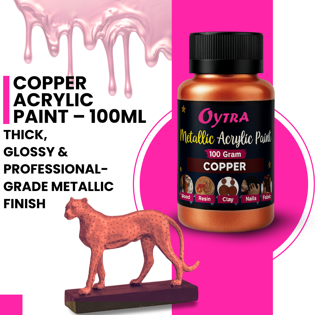 - Vibrant Metallic Copper Acrylic Paint 100g - Our Copper Paint For Metal Is Designed To Give A Brilliant Shine And Smooth Texture. Each Acrylic Metallic Paint For Metal 100 Gram Bottle Delivers Long-Lasting Coverage Making It Perfect Metallic Paint For Metal Or Wooden Furniture Painting.
