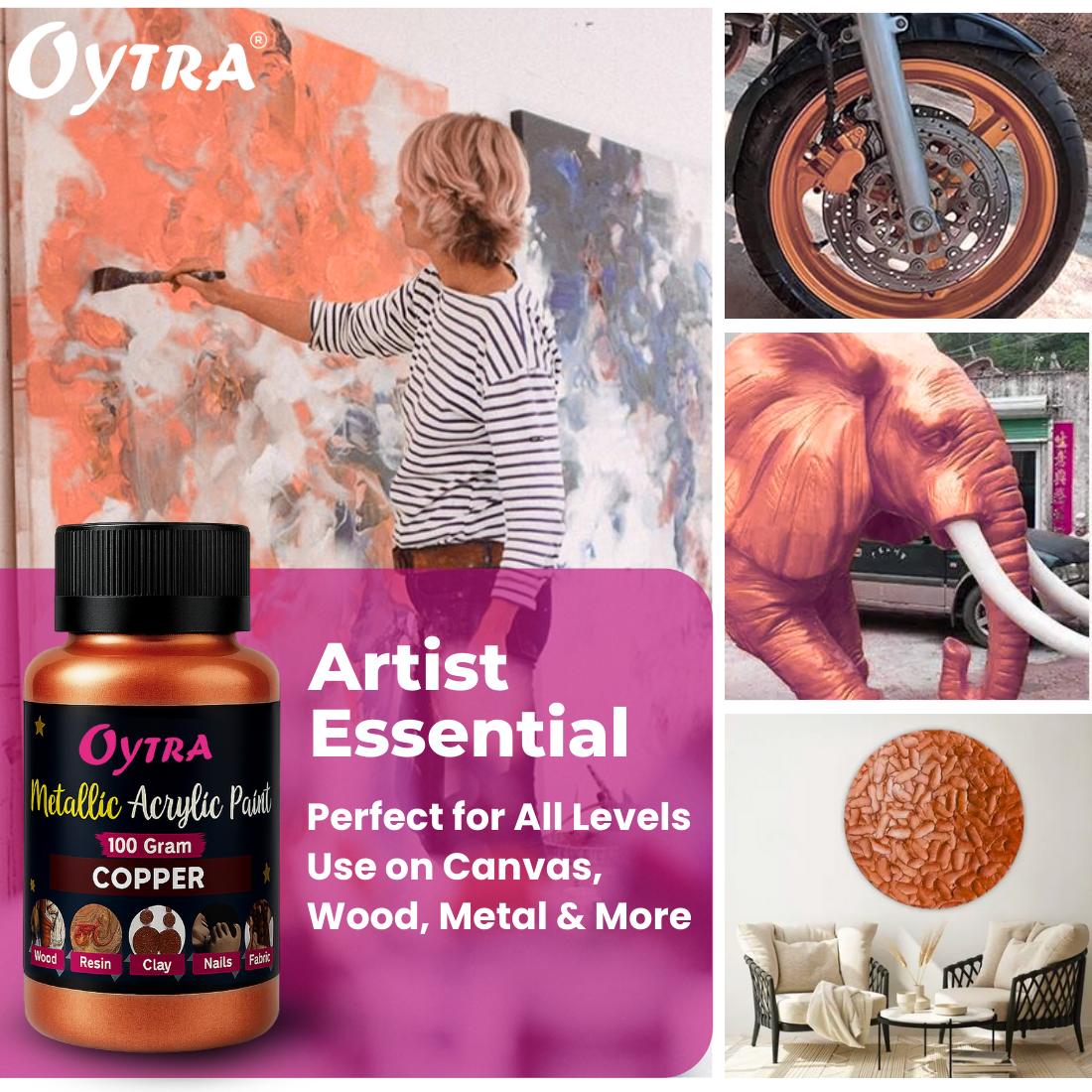 - Metallic Shine & Shimmer - This Metallic Acrylic Paint Is Formulated With High-Quality Acrylic Shimmer Drop Metallic Paint Particles Our Copper Acrylic Colour Metallic Paint Deliver A Long-Lasting Shimmering Effect Ensure Your Artwork Wood Paint For Furniture Fabric Painting And Home Decor Projects Stay Vibrant.