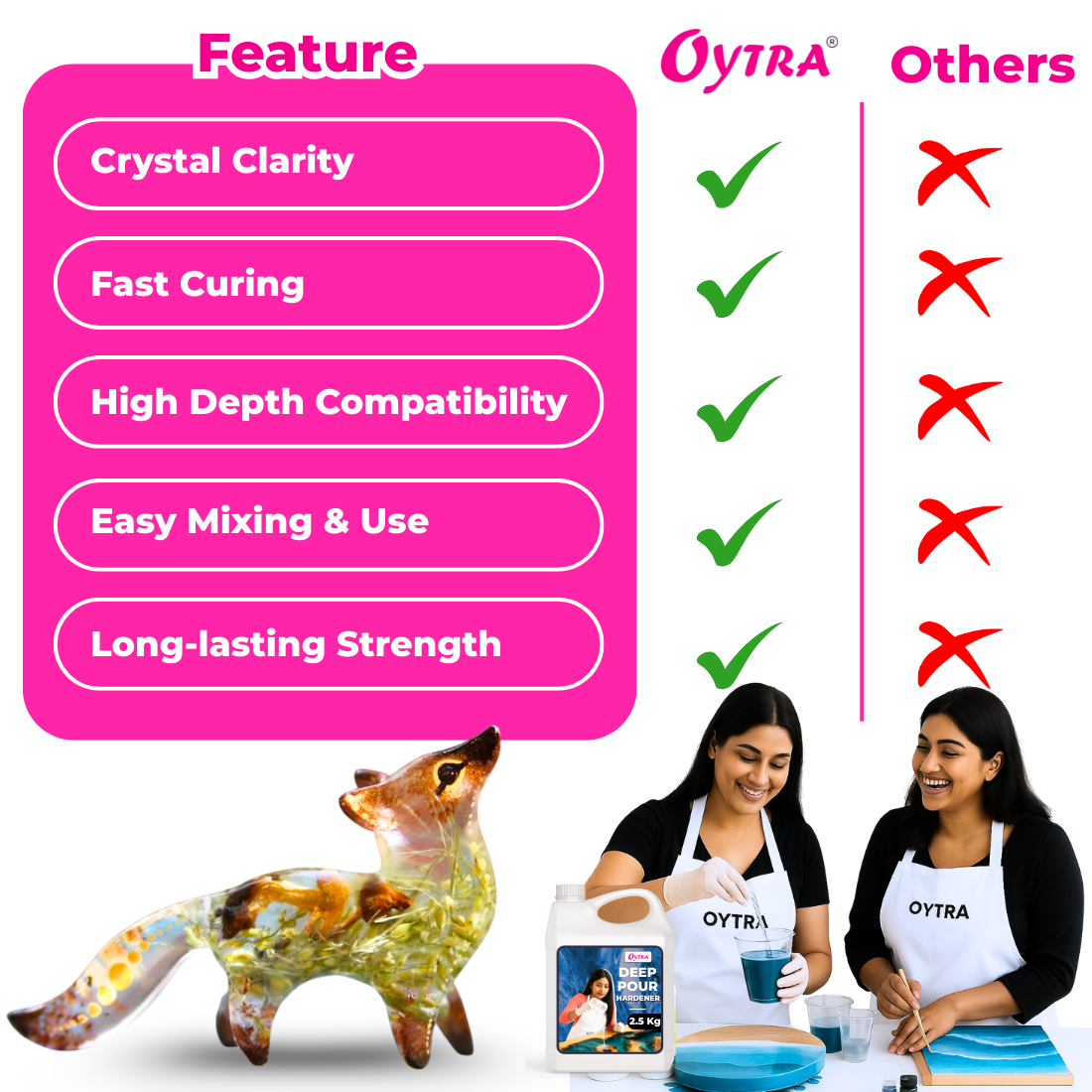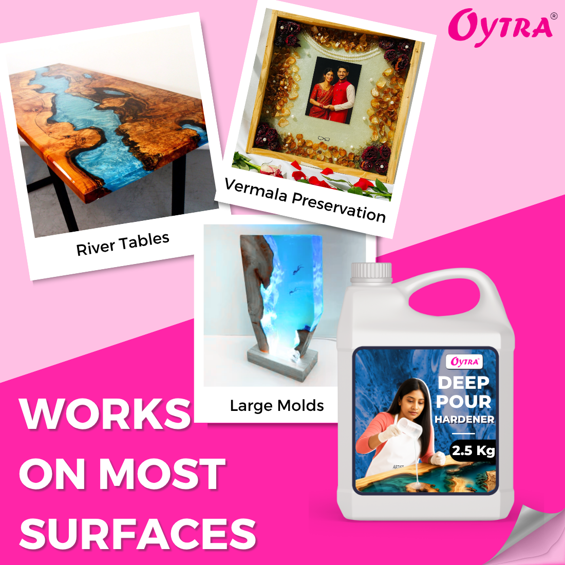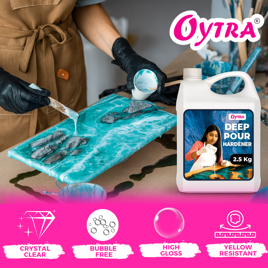 - Includes Part B Hardener Only: 2.5 Kg Of High-quality Deep Pour Hardener (Resin Not Included) Designed For Deep Pour Resin Work. Essential For Achieving A Durable, Ultra-clear Finish In Projects Like Deep Molds, Tabletops, Vermala Preservation, Etc.