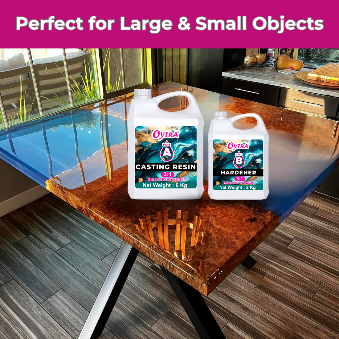 - Complete 3:1 Resin and Hardener Kit – Includes 6 Kg Resin and 2 Kg Hardener With a 3 1 Resin and Hardener Ratio, Perfect for Both Beginners and Professionals. Easy-to-use Casting Resin and Hardener 3 1 for Clean Mixing and Reliable Results.