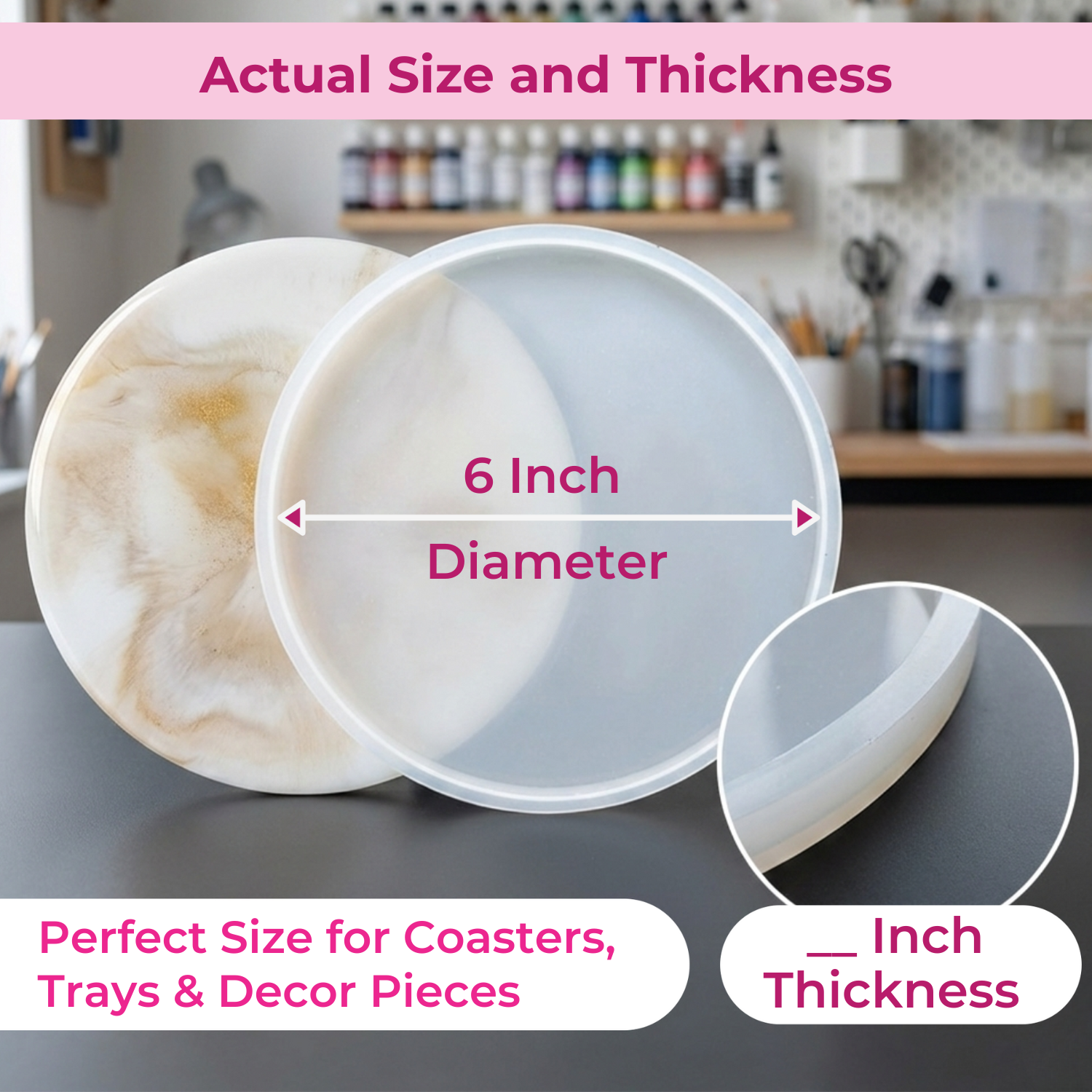 - 6 Inch Size & Perfect Depth: This Resin Art Kit Silicone Moulds Featuring a 6 Inch Diameter Depth Silicone Moulds Set Of 1 For Resin Art, Ideal For Creating Generously Sized Agate Coaster Set That Provide A Substantial And Elegant Look To Resin Coaster.
