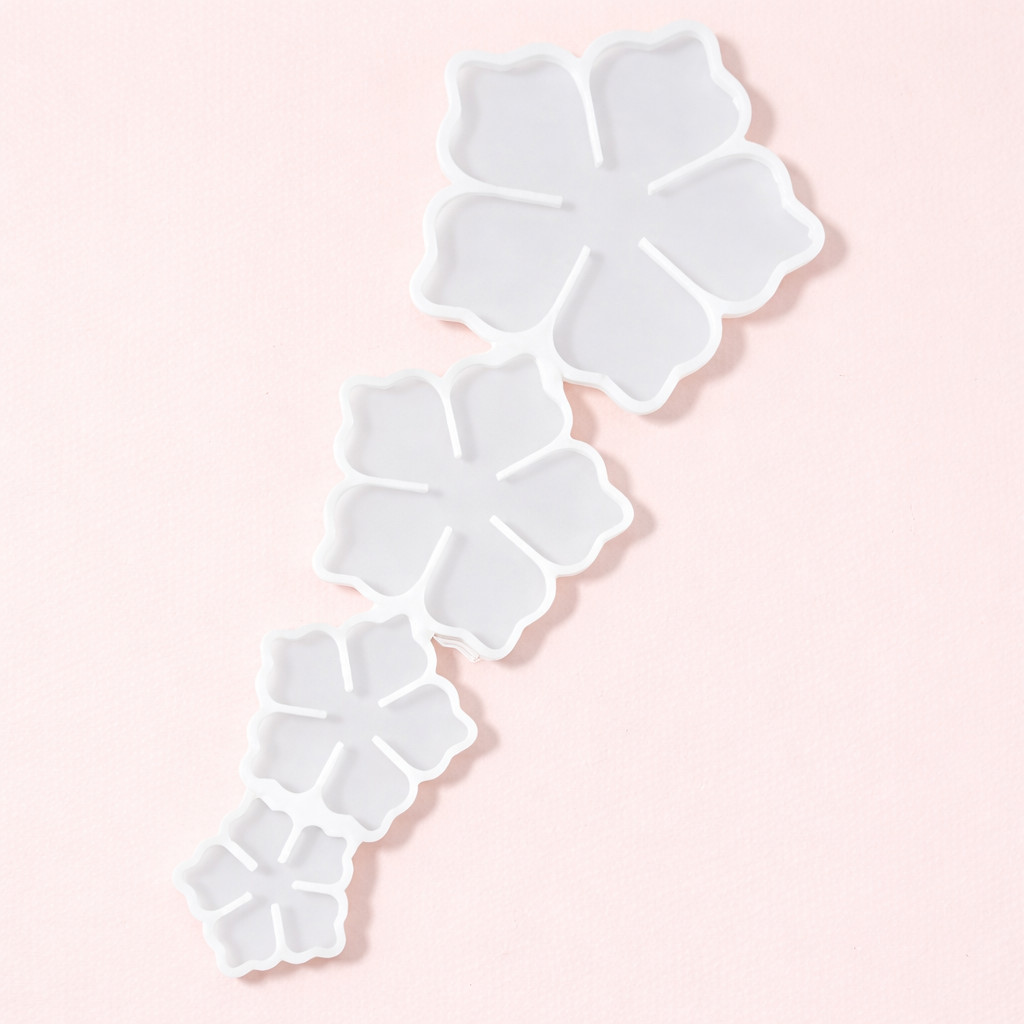 4 In One Flower Mould Silicone Mold For Resin Coasters Jewelry Crafts DIY Casting