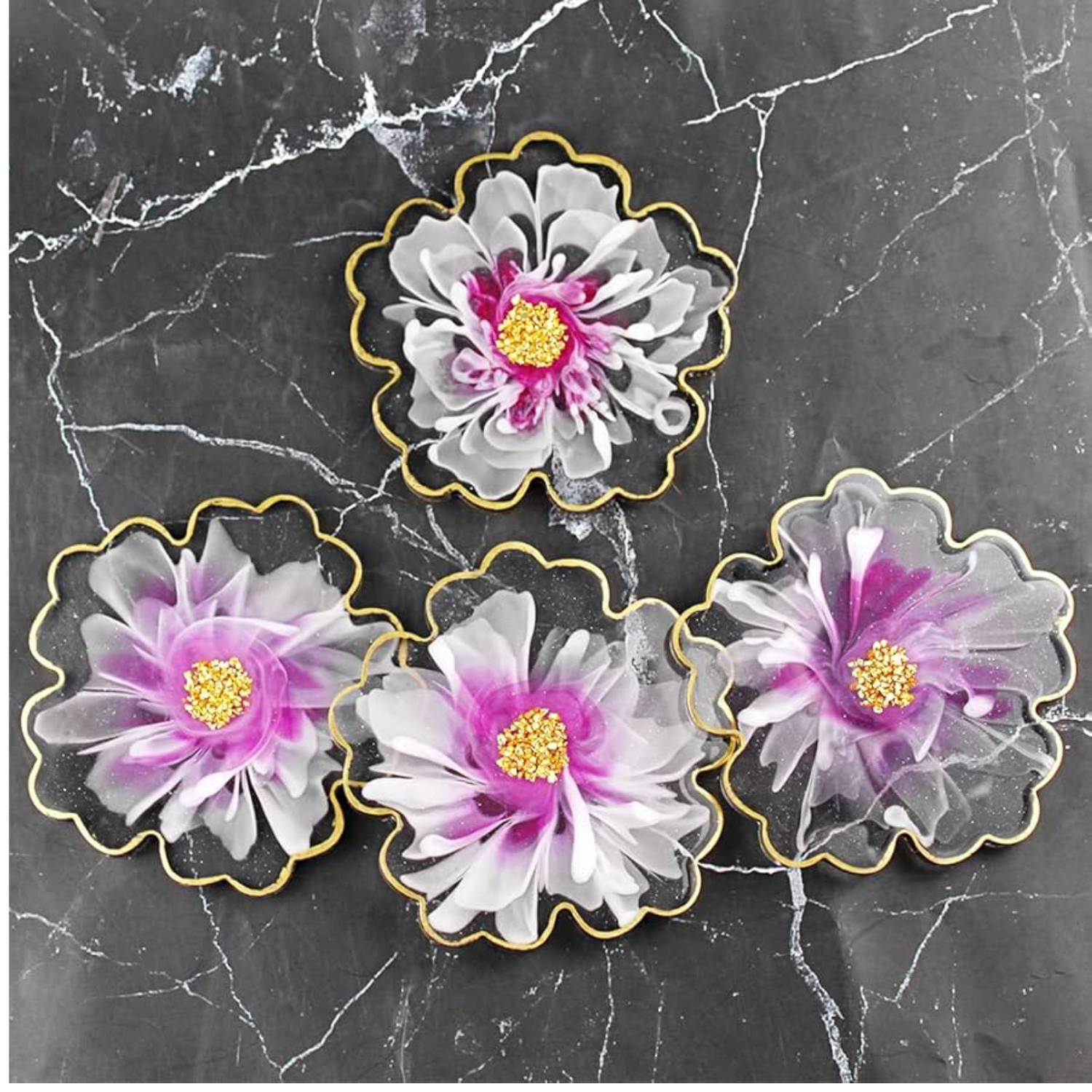 4 Inch Resin Flower Coaster Mould Set of 4