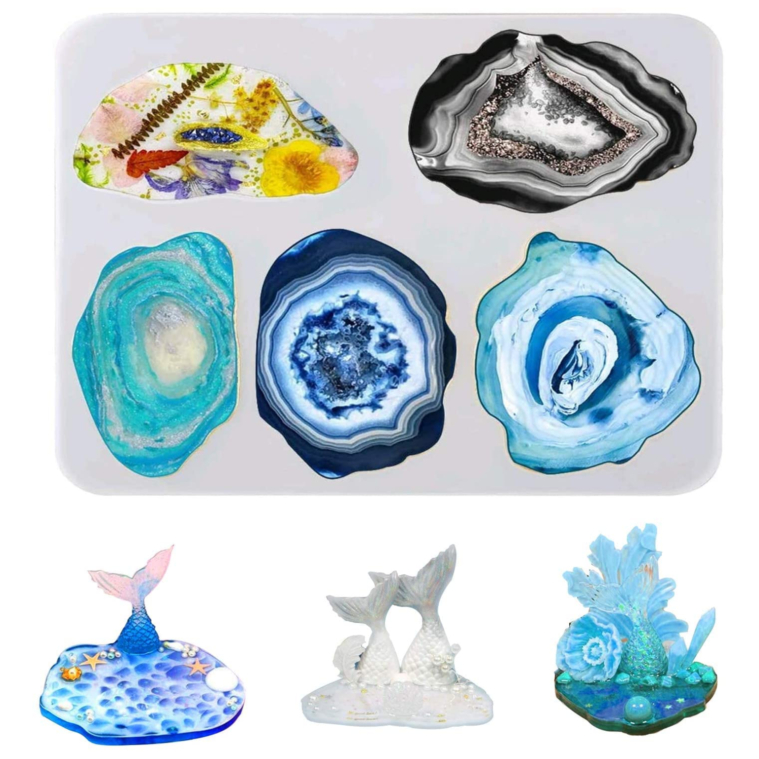 5 Cavity Resin Coaster Silicone Molds for Resin Casting DIY Crafting, Agate Coasters & Tray