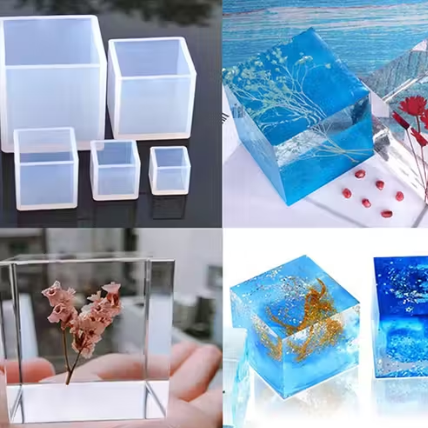 Set of 5 Cube Moulds: Includes five different cube sizes, perfect for various resin art projects and DIY crafts.