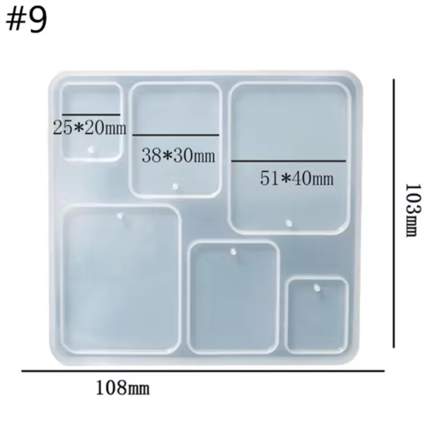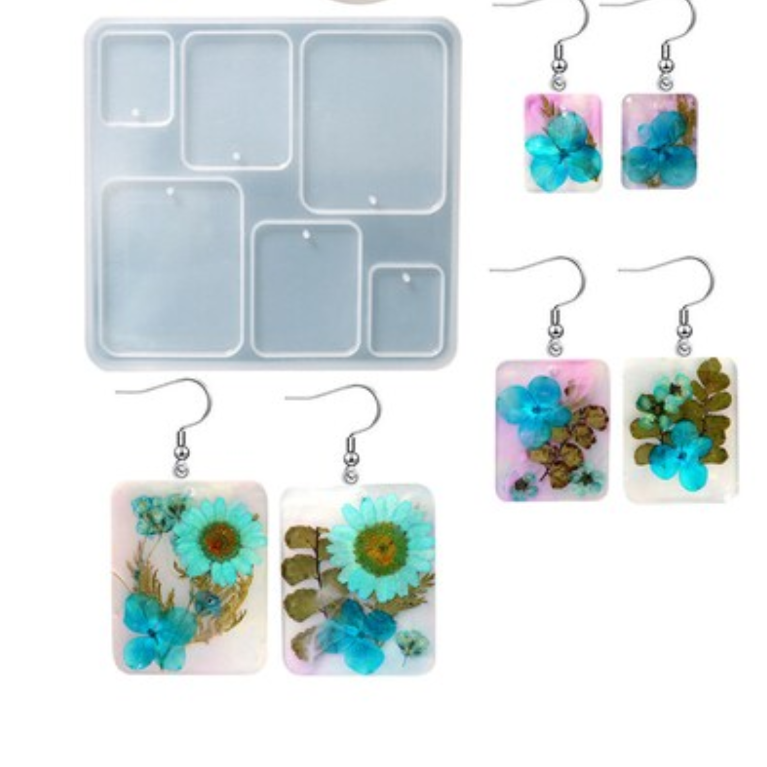 6 Cavity Rectangle Shape Silicone Resin Mould for Earrings, Keychain with Holes DIY Jewelry
