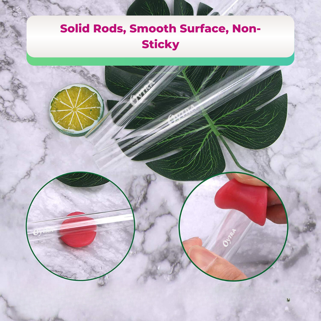 - Premium Acrylic Roller – Each set comes with a solid clear acrylic roller, 8 inches long and 2 cm (0.8 inch) diameter, perfect for smooth clay rolling.