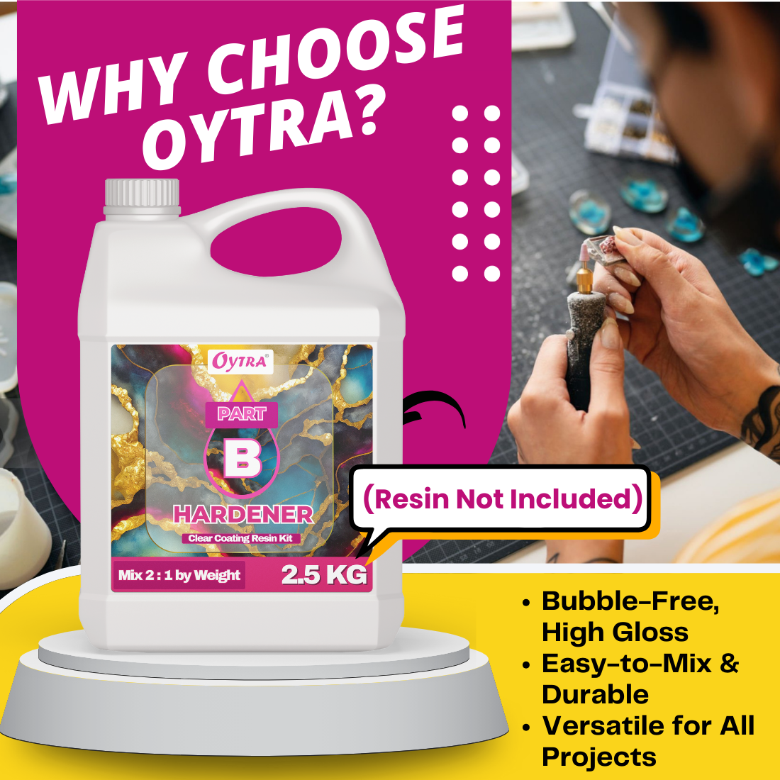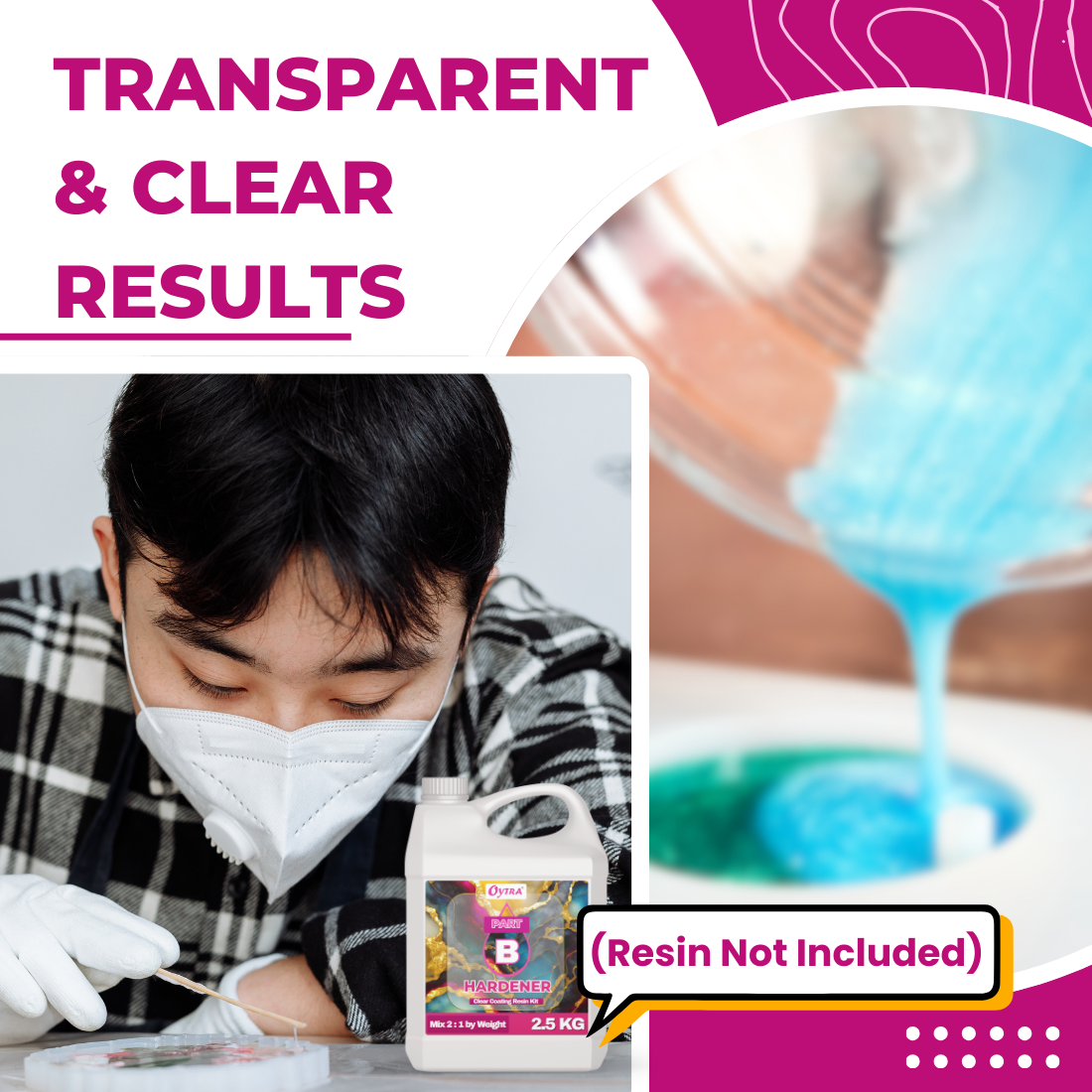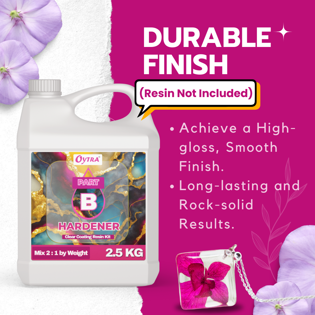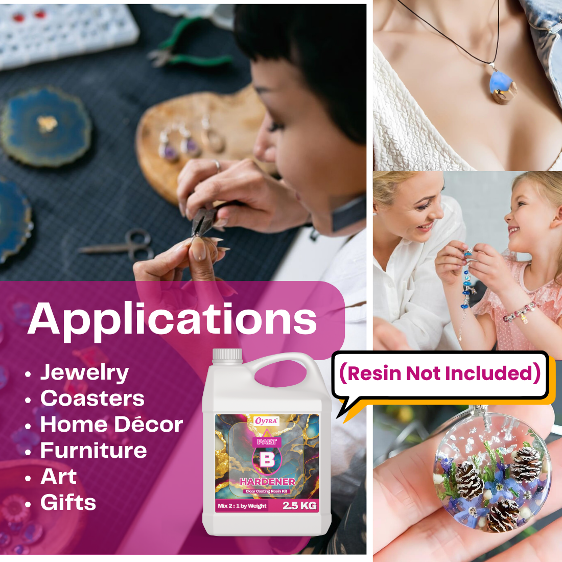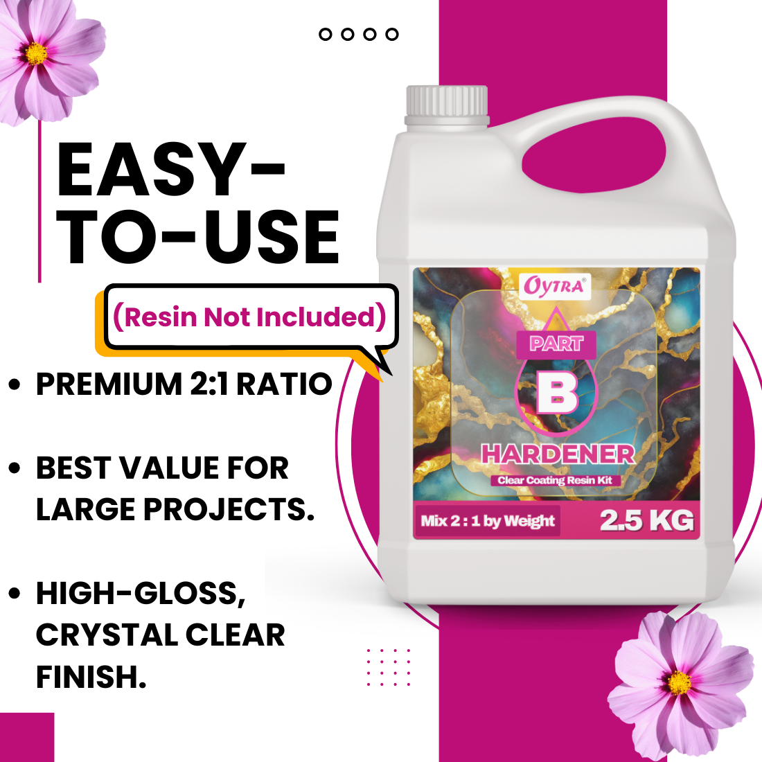 Includes Part B Hardener Only: 2.5 Kg of high-quality epoxy hardener (resin not included) designed for art resin applications. Essential for achieving a durable, ultra-clear finish in projects like keychains, jewelry, and coasters.