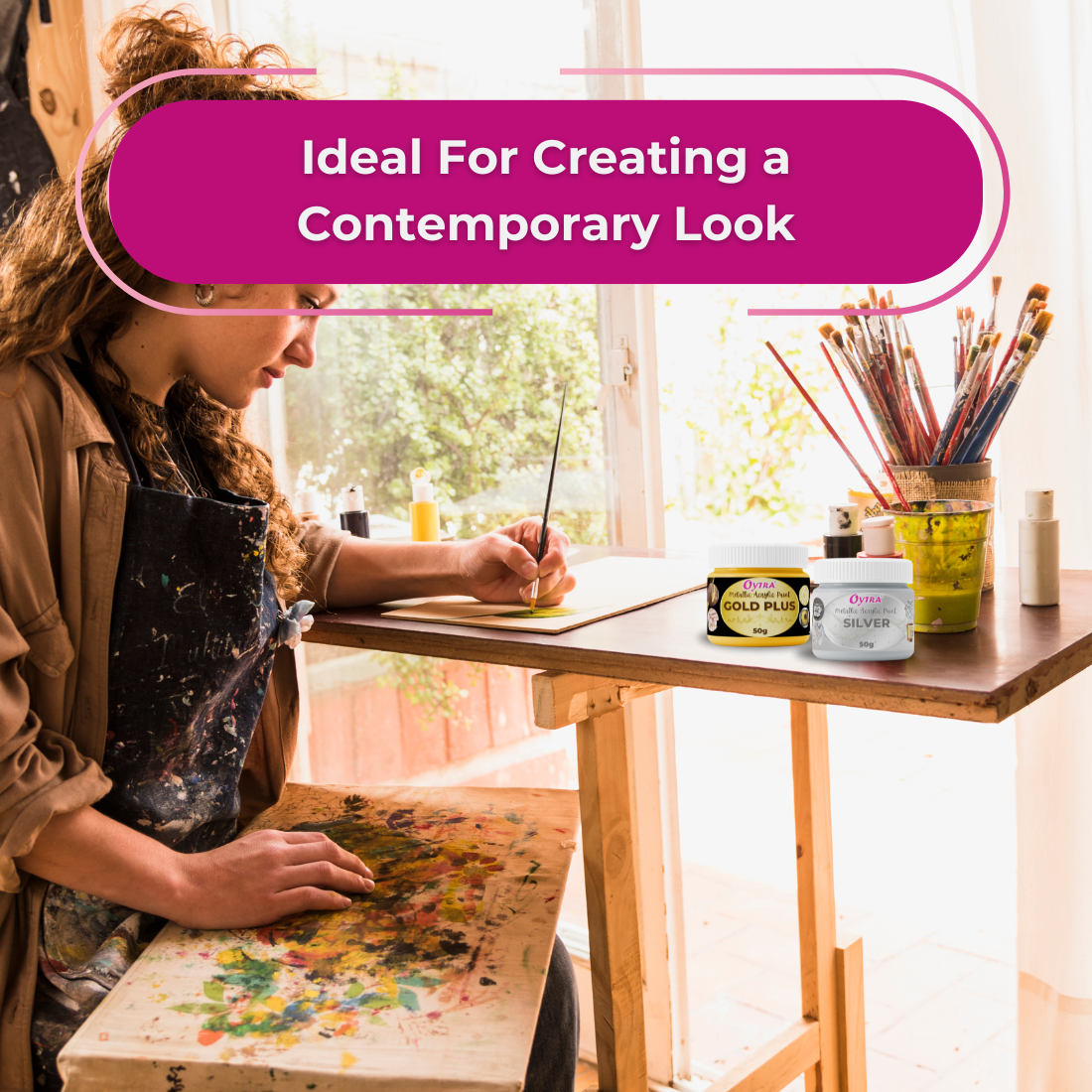 - 50 ml of Silver and 50 ml of Gold Acrylic Metallic Colors for Professional Artists