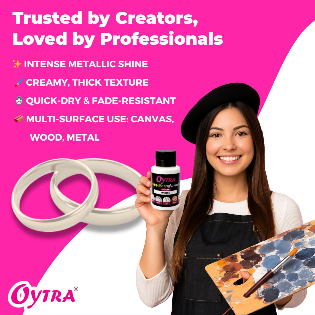 - Vibrant Metallic White Acrylic Paint 100g - Our White Paint For Metal Is Designed To Give A Brilliant Shine And Smooth Texture. Each Acrylic Metallic Paint For Metal 100 Gram Bottle Delivers Long-Lasting Coverage Making It Perfect Metallic Paint For Metal Or Wooden Furniture Painting.