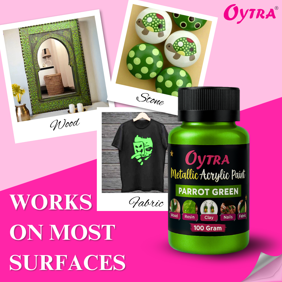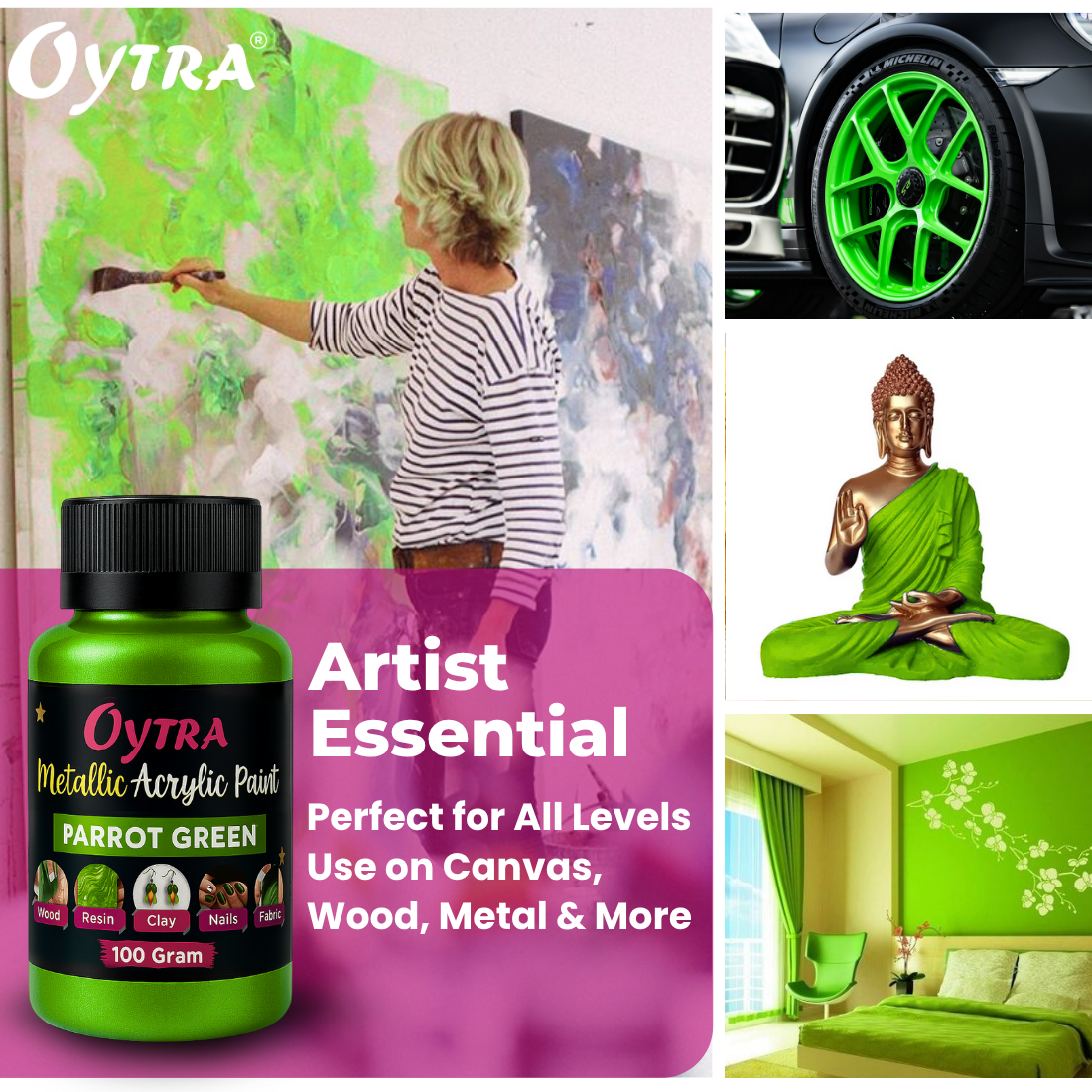 - Metallic Shine & Shimmer - This Metallic Acrylic Paint Is Formulated With High-Quality Acrylic Shimmer Drop Metallic Paint Particles Our Parrot Green Acrylic Colour Metallic Paint Deliver A Long-Lasting Shimmering Effect Ensure Your Artwork Wood Paint For Furniture Fabric Painting And Home Decor Projects Stay Vibrant.