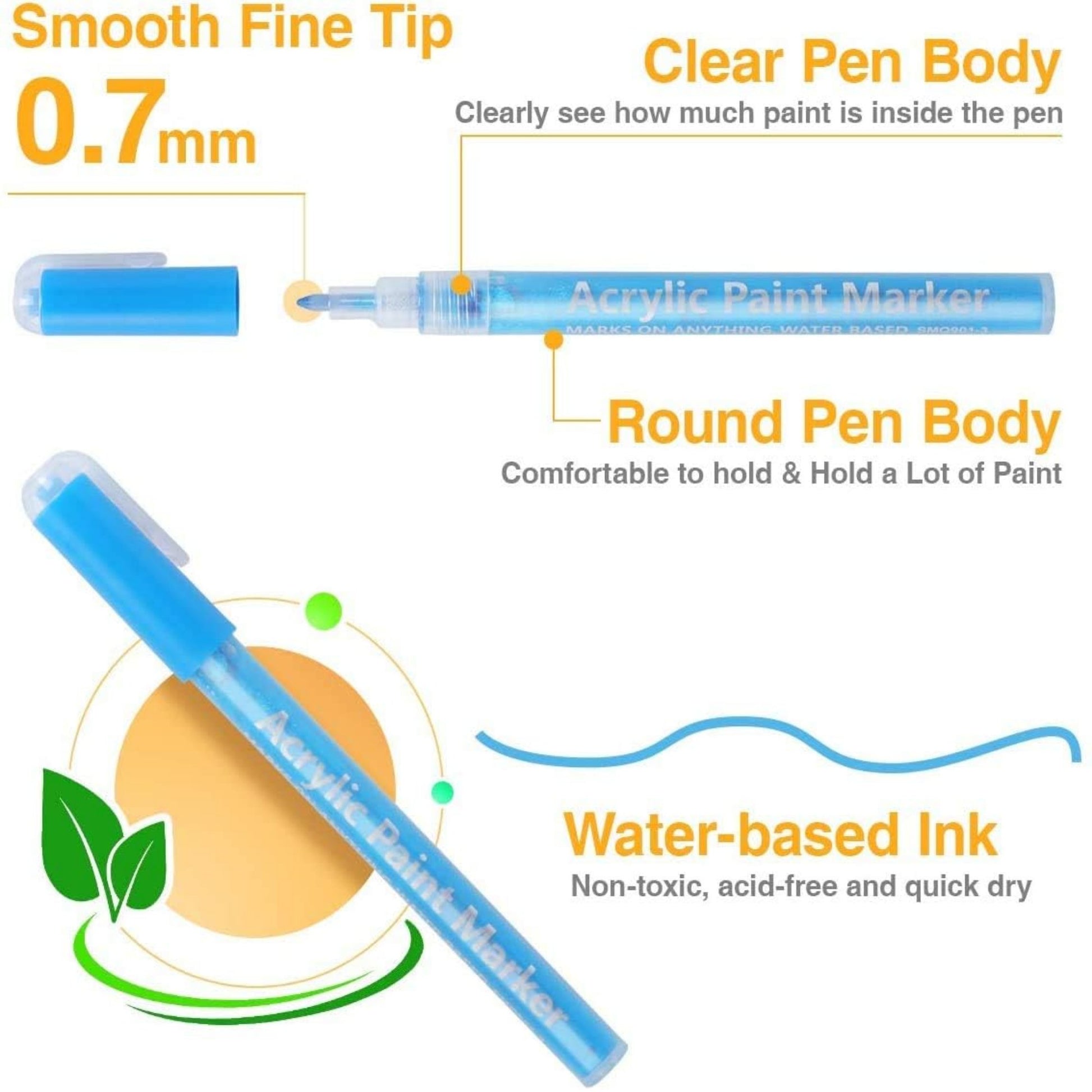 - 0.7mm-1mm Acrylic Paint Markers : Our paint pens for acrylic painting can be used on most surfaces! So, if you're looking for versatile paint pens for rock painting, stone, ceramic, glass, wood, and more, these multi-hyphenate markers have really got you covered!