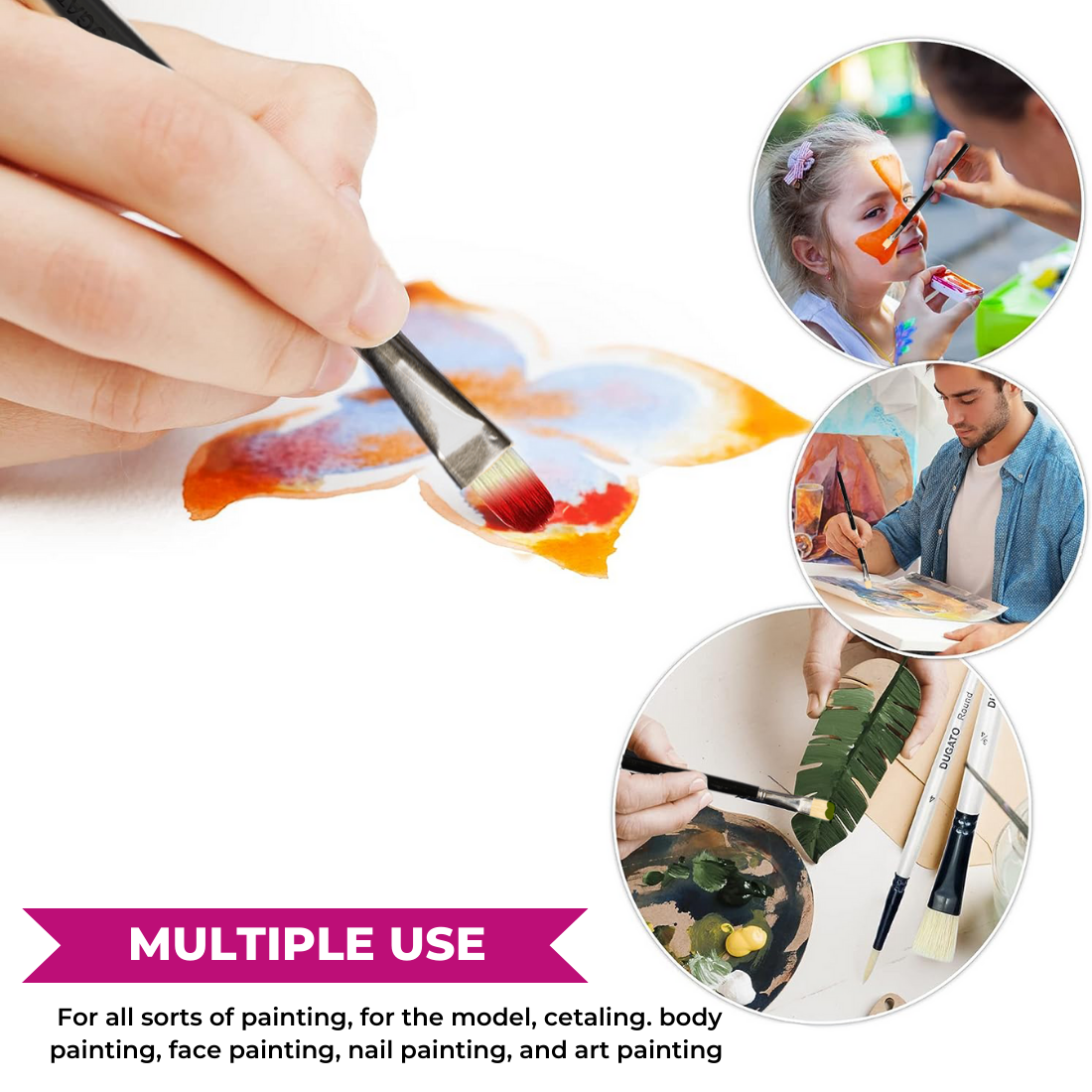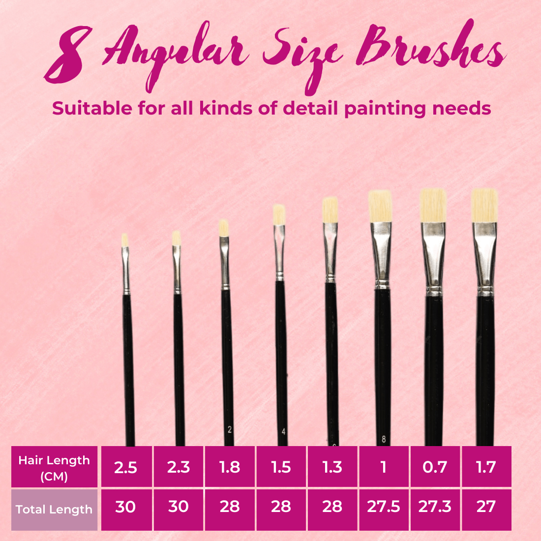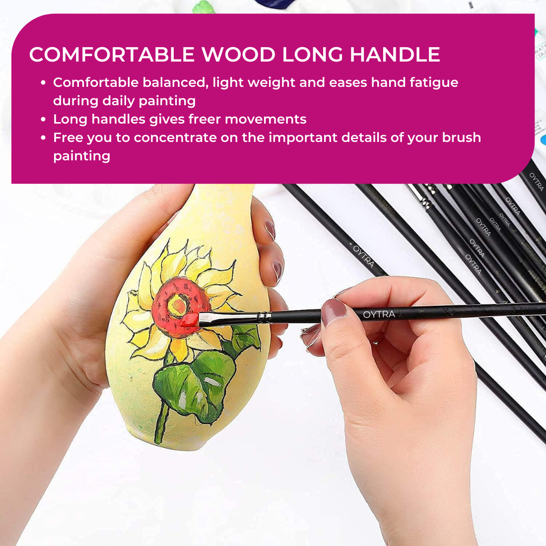 - NATUARL WOODEN HANDLE - Comfortable balanced, light weight and polished birch wood eases hand fatigue during daily painting. Long handles gives freer movements for exciting brushstroke plus perspective to your artwork, free you to concentrate on the important details of your brush painting, aiding in muscular dexterity for painting with ease and control