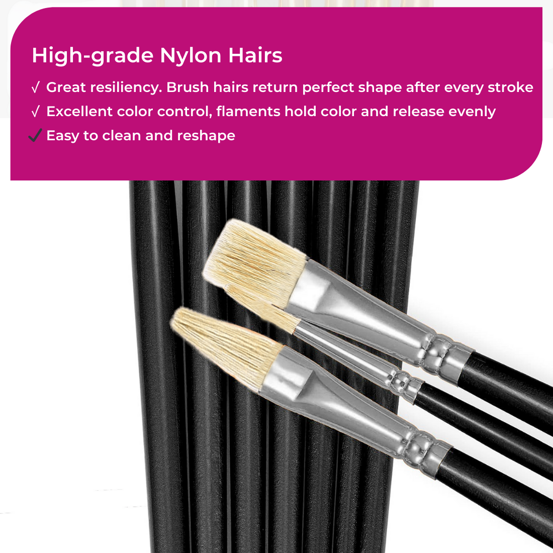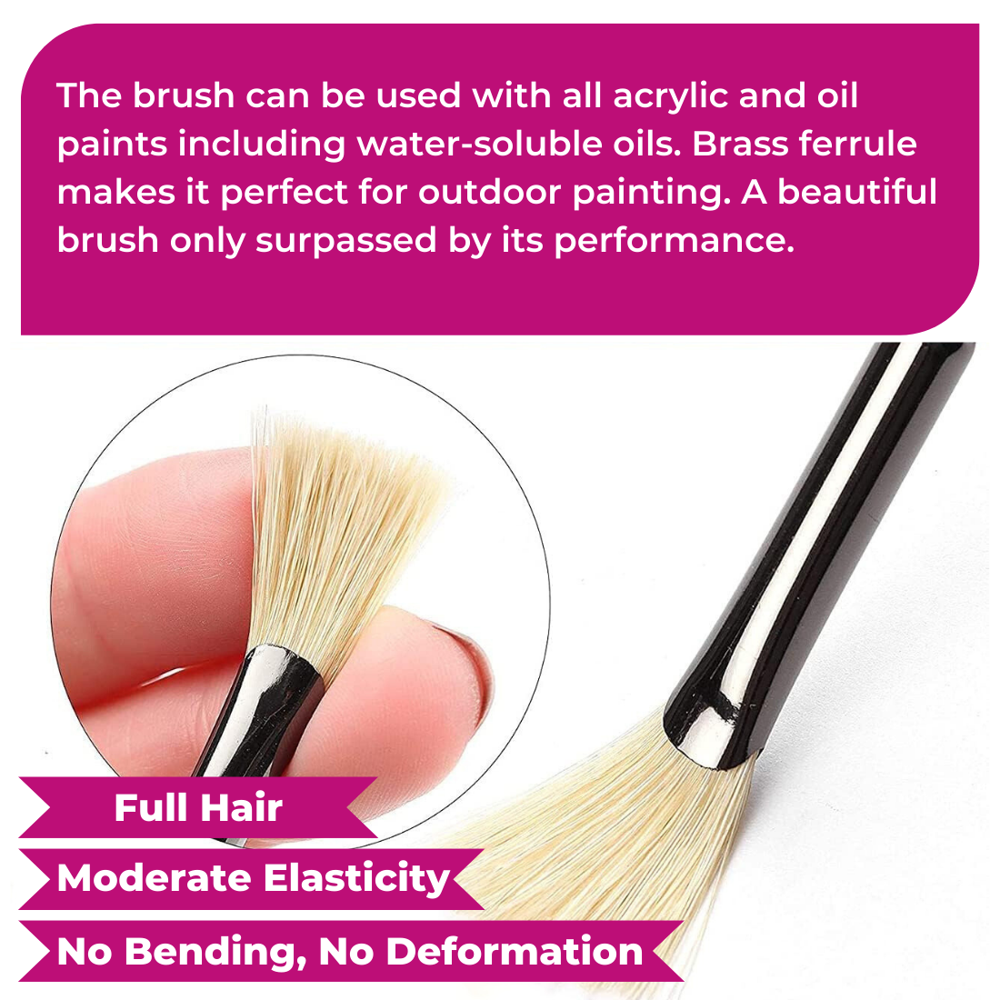 - HOG BRISTLES & NO SHEDDING - This set of brushes is best for oils and acrylic paint, 100% pure hog bristle brushes are secured with high grade copper crimped ferrules, ensuring the hairs won’t be left on the canvas while you are painting.