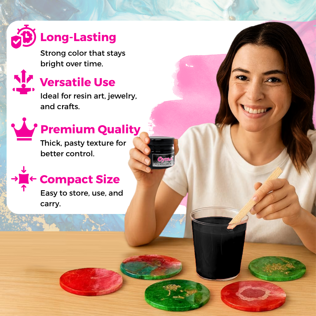 - Durable, Long Lasting Resin Pigment with Glossy Finish – High-quality resin colours for resin art provide excellent coverage, strong colour retention, UV resistance, and smooth glossy finish. Perfect for resin coaster kits, resin tray pigment, resin clock projects, jewellery moulds, resin pouring art, and epoxy resin crafts.