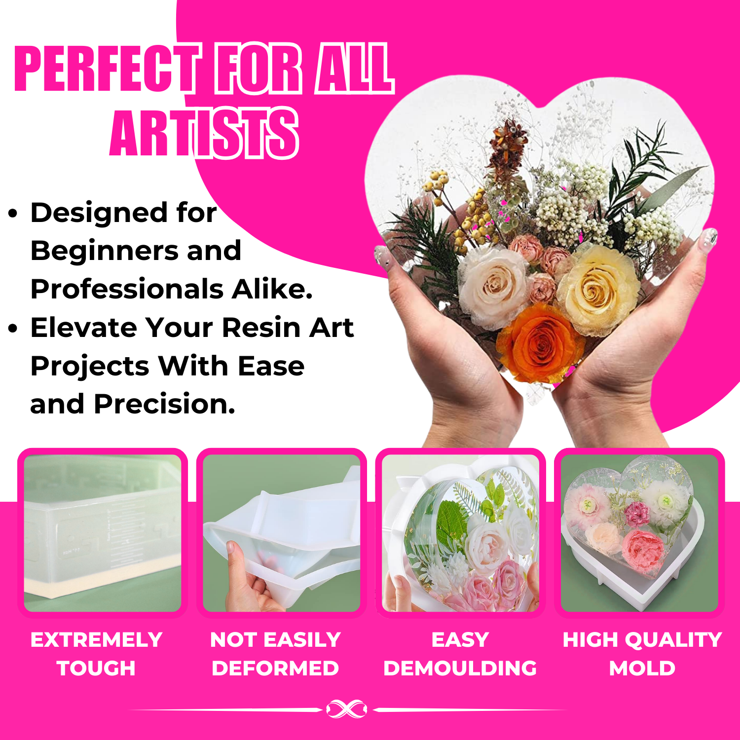 Heart Shaped Resin Mold – Large silicone mould designed in a romantic heart shape, perfect for preserving flowers, wedding bouquets, or creating personalized resin crafts.