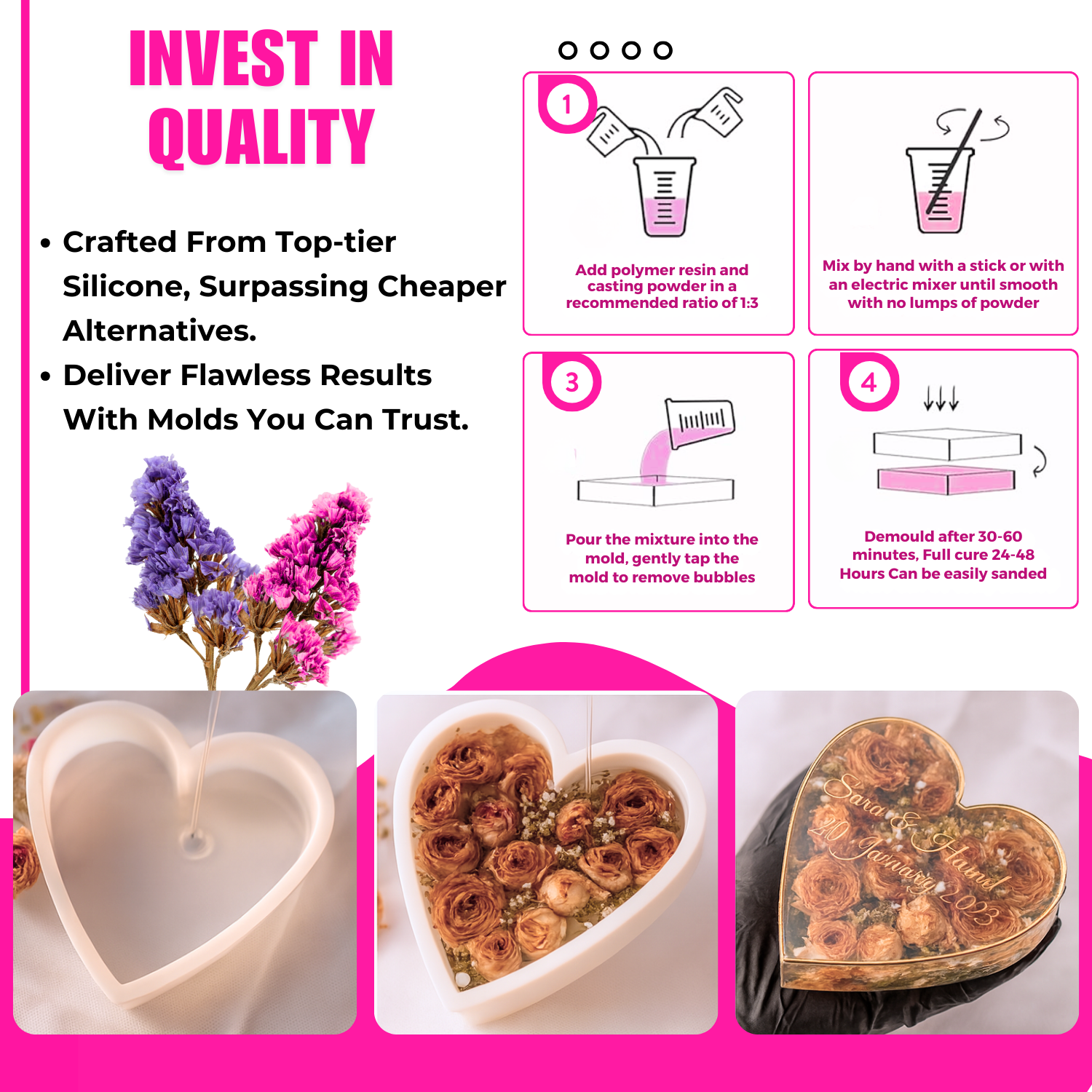 Heart Shaped Resin Mould for Epoxy Casting Large Silicone Mold for Floral Keepsake Wedding Bouquet Preservation DIY Craft Decoration